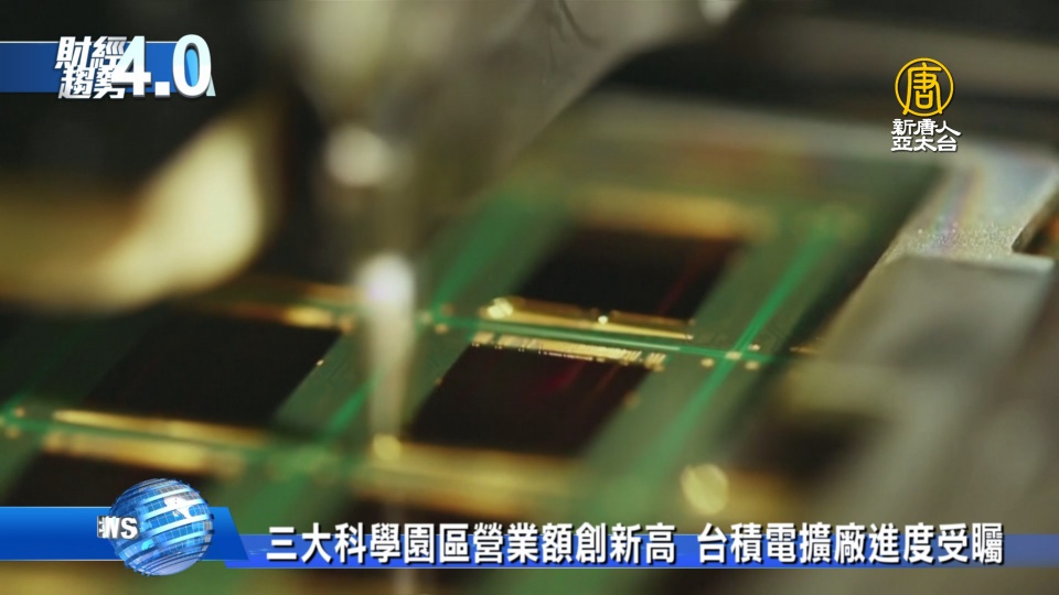【新唐人亞太台 2021 年 09 月 18 日訊】台灣三大科學園區今年上半年營業額破兆,達到新台幣約1.7兆元,相較於去年大幅成長25%,創近8年最大漲幅。三大科學園區營業額,積體電路占比約7成,而台積電傳出有意在高雄設12吋晶圓廠,也受到議論。