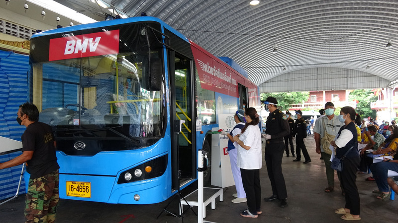COVID-19(2019冠狀病毒疾病)第三波疫情席捲泰國,政府努力提高全國疫苗覆蓋率,目前曼谷市政府已有6輛改裝過的疫苗巴士,其中1輛今天開到派恩寺(Wat Phai Ngoen),幫週遭社區行動不便的人以及長者施打疫苗,曼谷市長阿斯文(Aswin Kwanmuang)到場視察執行狀況。