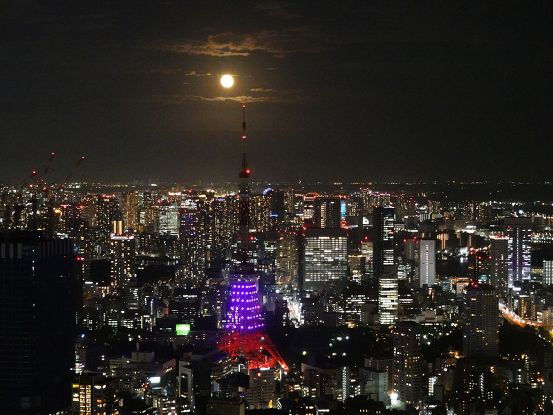 睽違8年中秋節逢滿月,東京六本木之丘森大廈的戶外展望台21日有媒體人和遊客前來拍攝又大又圓的明月。東京鐵塔上方秋夜明月的美景令人讚嘆。(圖/中央社)
