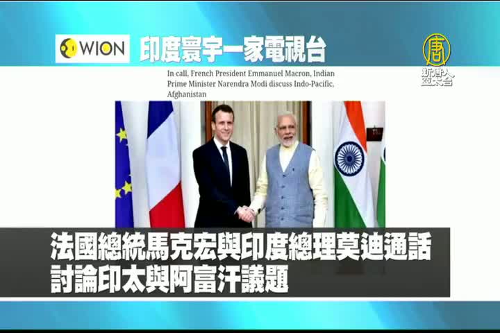 【新唐人亞太台 2021 年 09 月 22 日訊】最後是印度寰宇一家電視台報導:法國總統馬克宏週二與印度總理莫迪通話,商討印太區域的穩定與阿富汗議題。