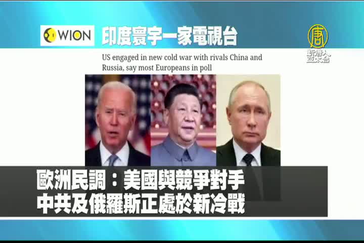 【新唐人亞太台 2021 年 09 月 23 日訊】最後是印度寰宇一家電視台報導:歐洲民調顯示,多數歐洲人認為美國與競爭對手中共及俄羅斯正處於新冷戰。