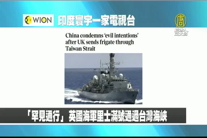 【新唐人亞太台 2021 年 09 月 28 日訊】最後是印度寰宇一家電視台報導:「罕見通行」,英國海軍里士滿號通過台灣海峽。