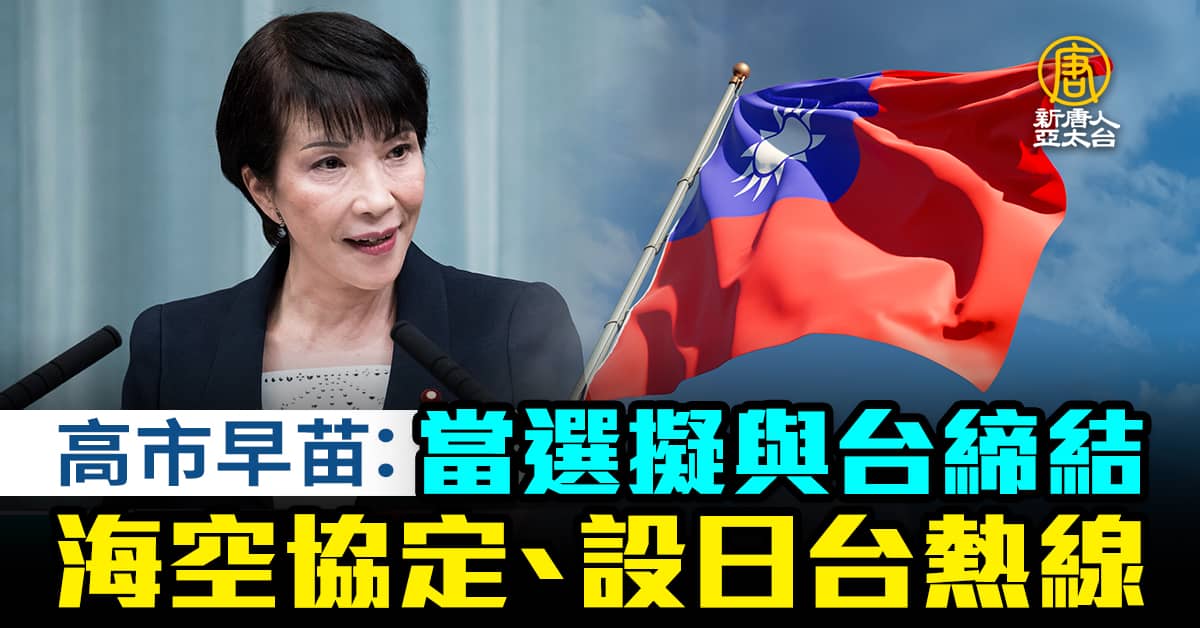 【新唐人亞太台 2021 年 09 月 28 日訊】日本自民黨魁選舉,即將在明天星期三展開,前首相安倍力挺的候選人高市早苗,26日與副防衛大臣中山泰秀在一場廣播節目的對談中表示,如果她出任首相,考慮與台灣締結海空事故防止協定、設置日台熱線,與台灣共享並互相通報領空侵犯應對措施等相關航跡情報。
