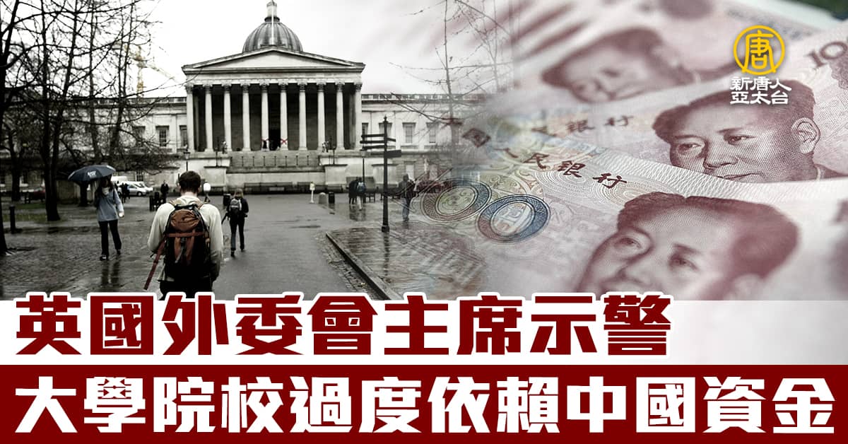 英國外委會主席示警 大學院校過度依賴中國資金
