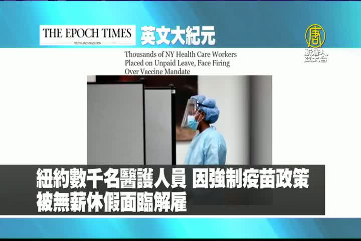 【新唐人亞太台 2021 年 09 月 29 日訊】首先來看到美國大紀元英文版報導:紐約數千名醫護人員,因強制疫苗政策,而被無薪休假面臨解雇。