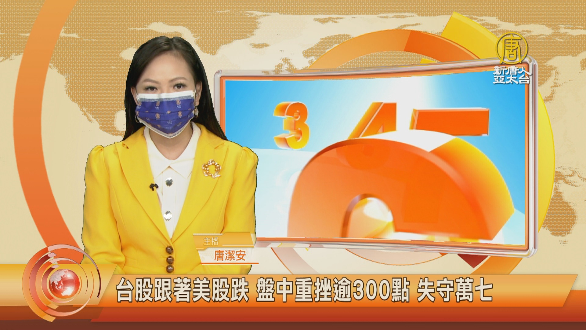 【新唐人亞太台 2021 年 09 月 29 日訊】新聞開始先來關心,受到美股重挫影響,截至中午12點,台股盤中重挫超過 320點,跌破一萬七大關。其中蘋概三天王台積電、大立光、鴻海也同步走跌。對此,財政部長蘇建榮表示,美股大跌有很多因素,包括中國大陸及美國本身的因素,國安基金將會密切注意。