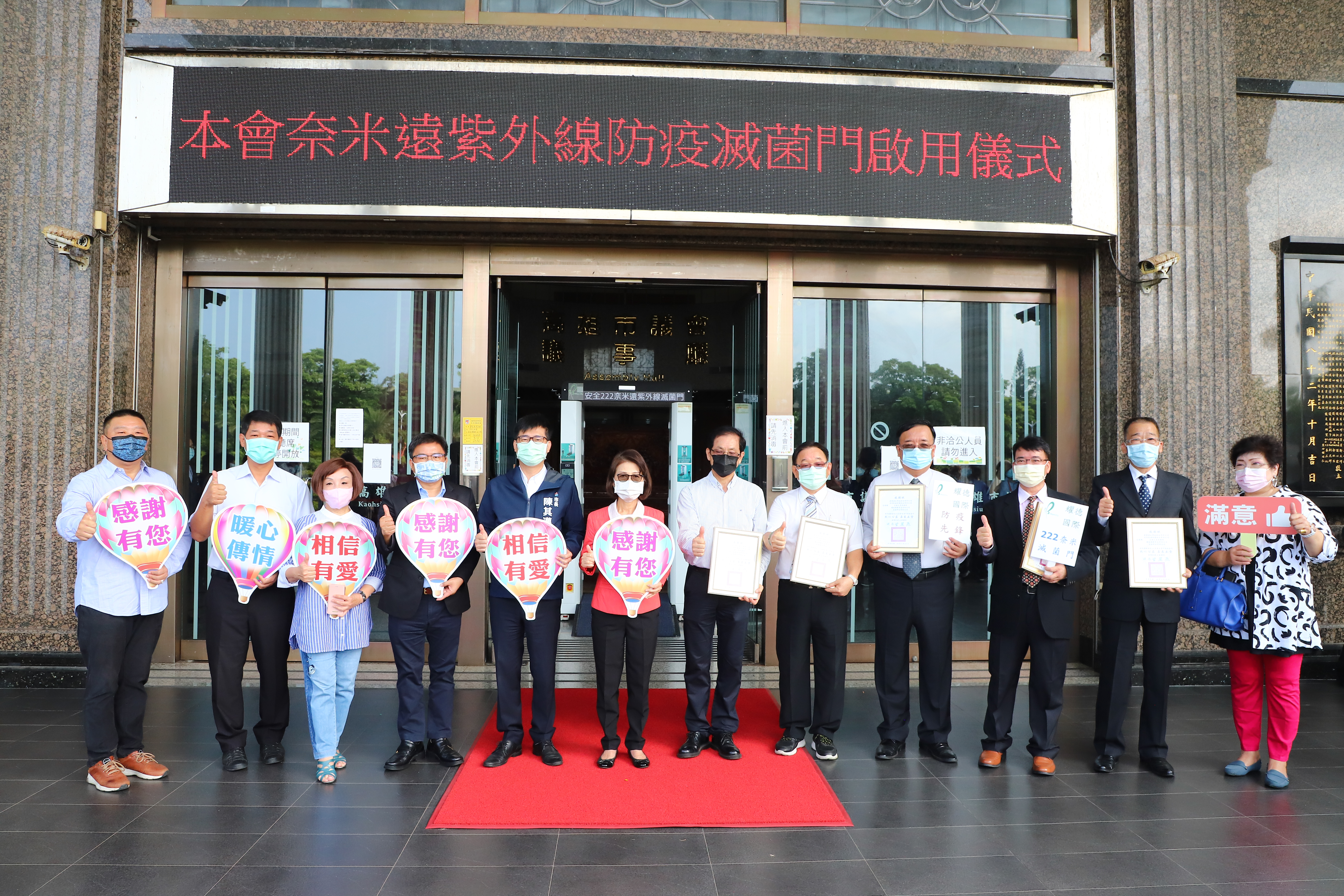 此座222奈米遠紫外線滅菌門是由耀德國際貿易、廣明源光科技、翌陽科技、市阜能源開發以及王建元資深顧問共同捐贈,裝設於市議會大門,提供體溫量測,並以不傷害人體的波長222奈米遠紫外線進行有效消毒殺菌。