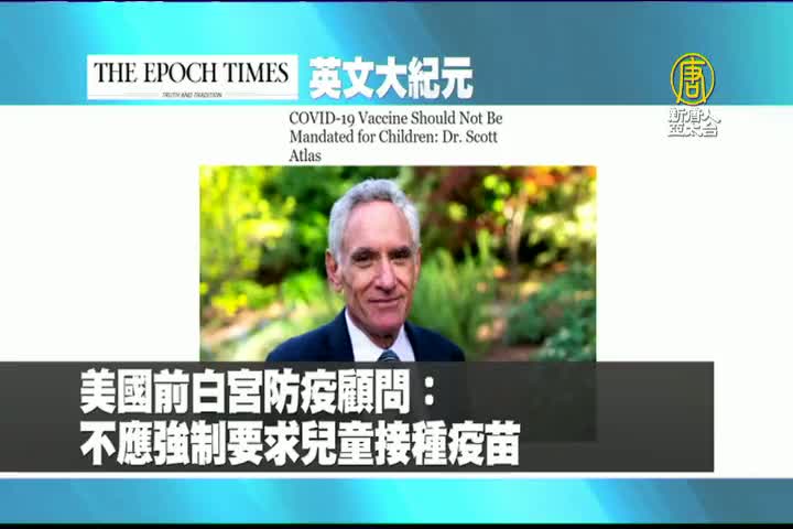 【新唐人亞太台 2021 年 09 月 30 日訊】首先來看到美國大紀元英文版報導:美國前白宮防疫顧問阿特拉斯表示,不應強制要求兒童接種疫苗。