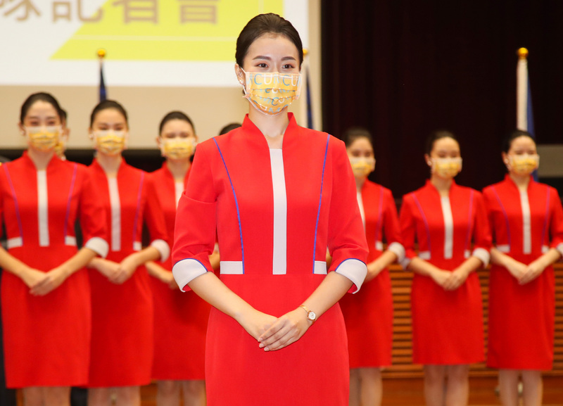 銘傳大學親善服務隊女隊長何采馨表示,因為口罩遮住半張臉,女隊員們將特地加強眼妝,呈現活潑有朝氣的一面,平常也會練習對鏡子微笑,多想開心的事,只要臉上有笑容,眼睛也會笑。