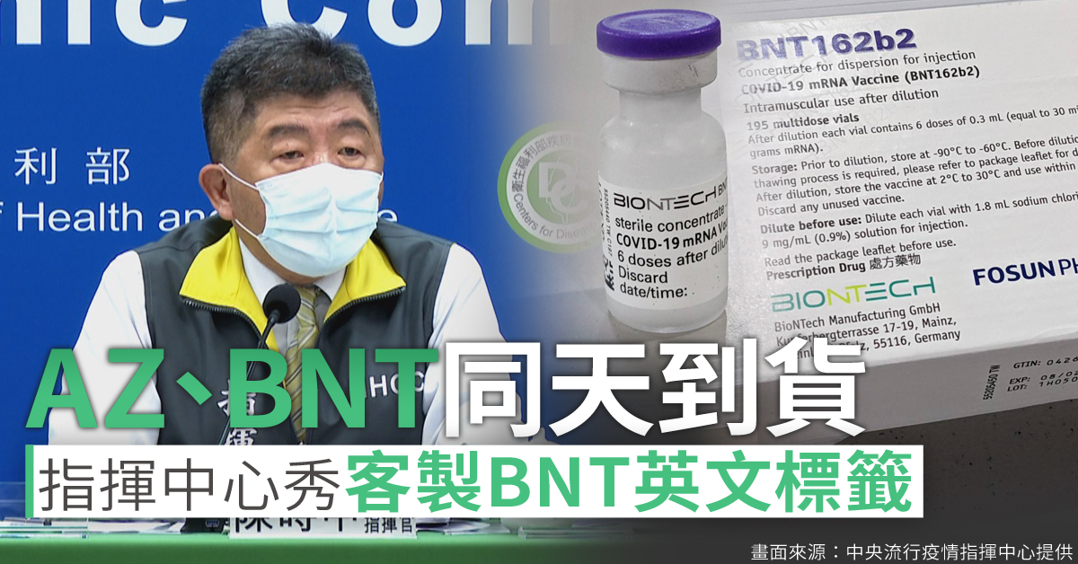AZ、BNT同天到貨 指揮中心秀客製BNT英文標籤