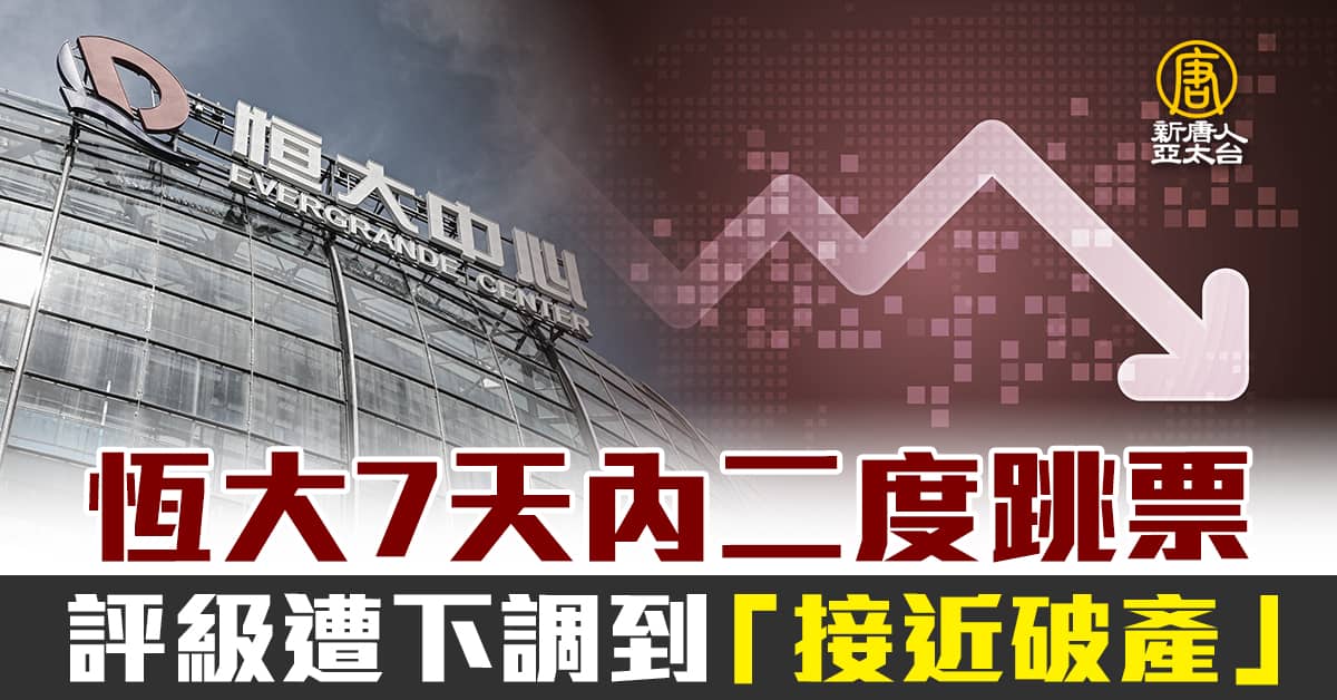 恆大7天內二度跳票 評級遭下調到「接近破產」