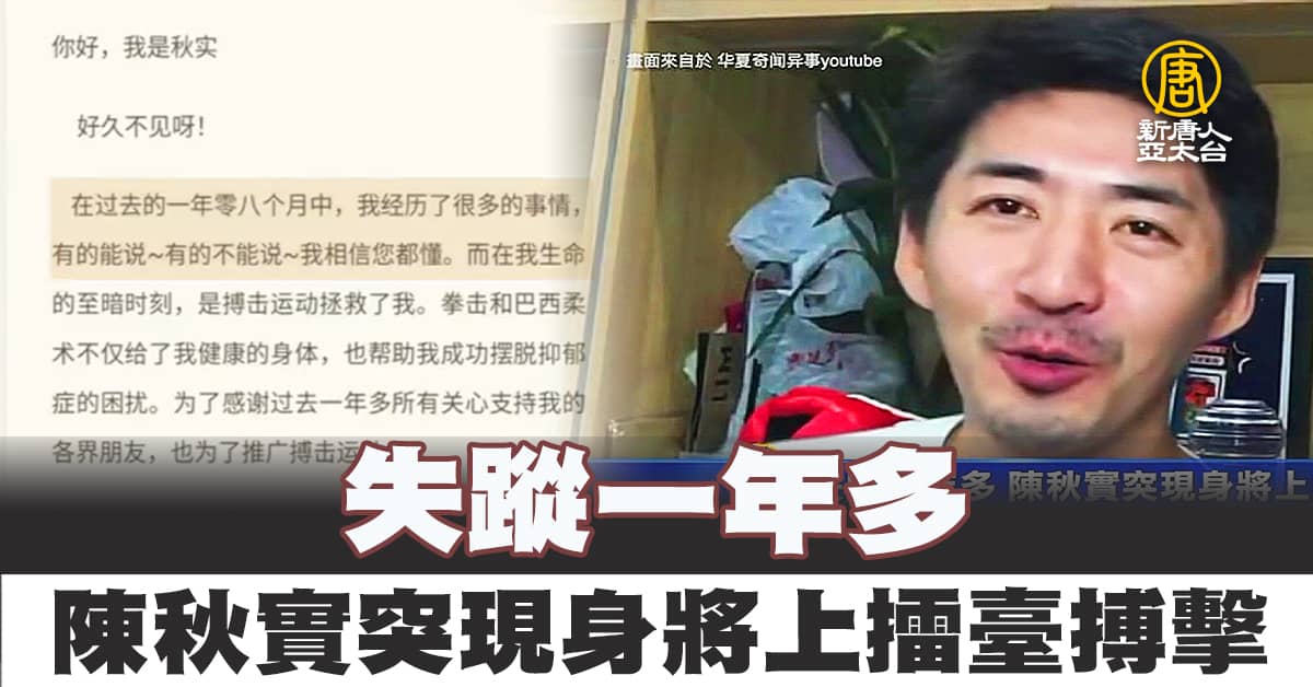 失蹤一年多 陳秋實突現身將上擂臺搏擊