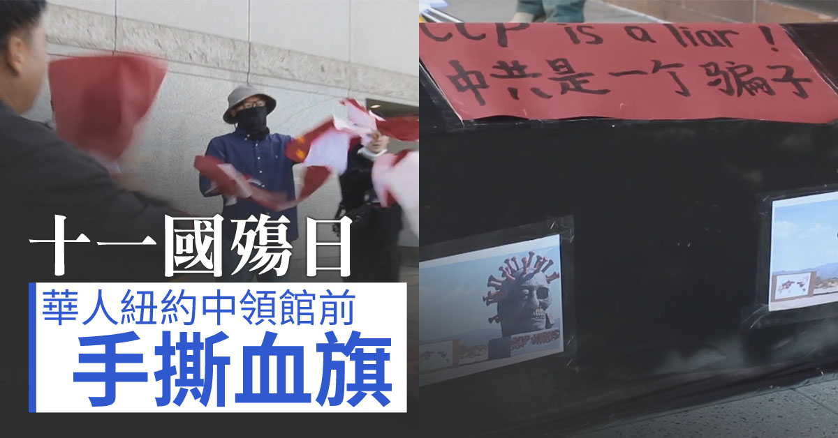 十一國殤日 華人紐約中領館前手撕血旗