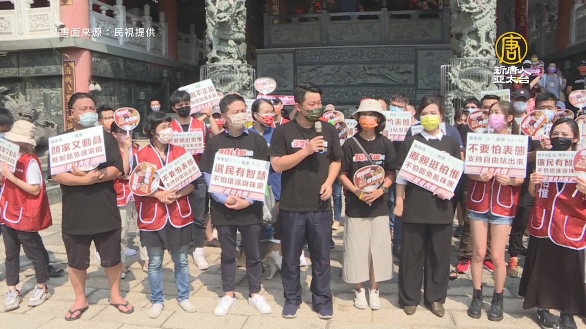 廟前廣場,反罷免志工,集結相挺,陳柏惟感動哽咽,差點落下男兒淚。