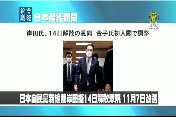 【新唐人亞太台 2021 年 10 月 04 日訊】來看到日本產經新聞報導:日本自民黨新總裁岸田文雄準備在14日解散眾議院,並在11月7日改選。