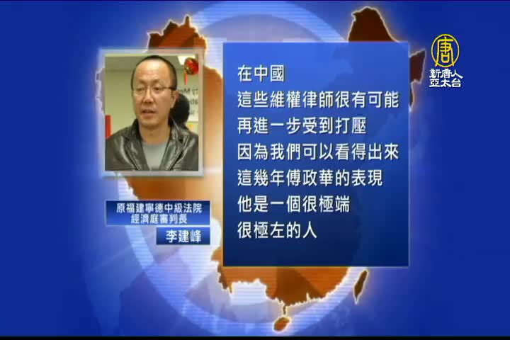 原福建省寧德中級法院經濟庭審判長 李建峰(2018.03):「這幾年傅政華的表現,他是一個很極端很極左的人。他會利用打壓律師之類的,樹立他的這些政績。」