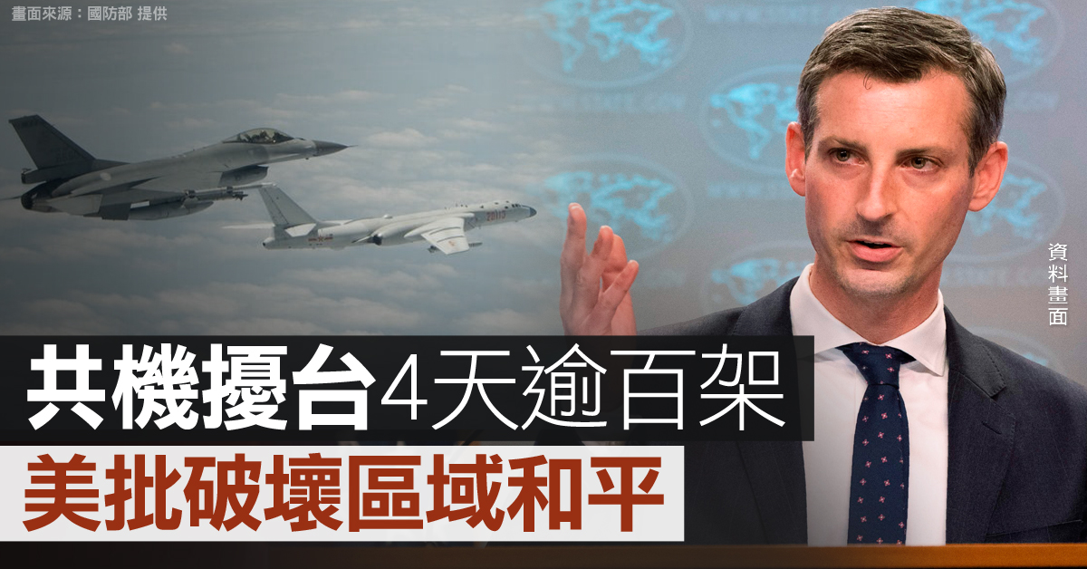 4天逾百架次共機擾台!美國務院批中共破壞區域和平