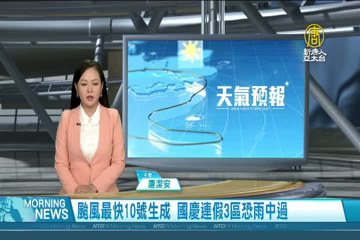 【新唐人亞太台 2021 年 10 月 05 日訊】歡迎您收看10月5日的早安新唐人,我是唐潔安,先來帶您關心天氣。今天各地晴朗高溫,氣象專家賈新興預估,最快周三、周四「獅子山」颱風有生成機會,至於另一個「圓規」颱風最快10至11日生成,迎風面的東半部地區、基隆北海岸及恆春半島,國慶連假可能要在雨中度過。帶您一起來看到國際媒體重要訊息。