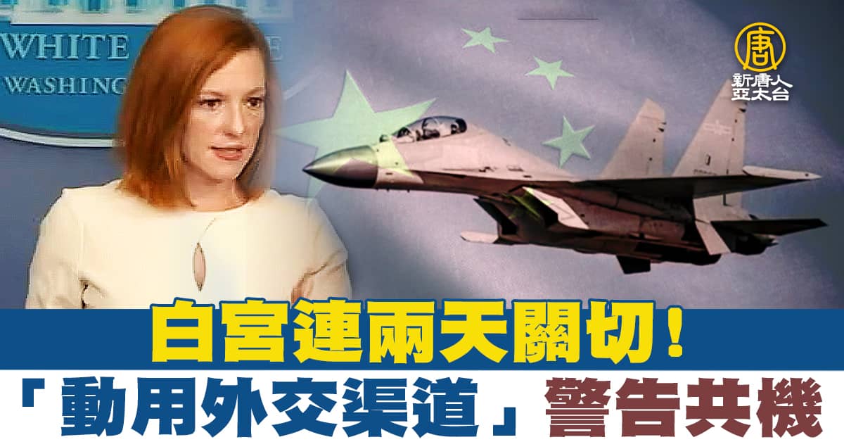 【新唐人亞太台 2021 年 10 月 05 日訊】中共周一(10月4日)派出56架次飛機侵擾台灣西南空域,白宮週一記者會上,四度被問到台灣遭侵擾議題,白宮(4日)再次重申美對台承諾、將協助台灣保持足夠的自衛能力,同時透露,正在「私下接觸,通過外交渠道傳達明確的信息」,有美國政要呼籲,派遣軍事顧問小組前往台灣。而在白宮連兩天關切共機擾台後,國防部最新消息顯示,中共今天只有一架軍機侵入我西南防空識別區。
