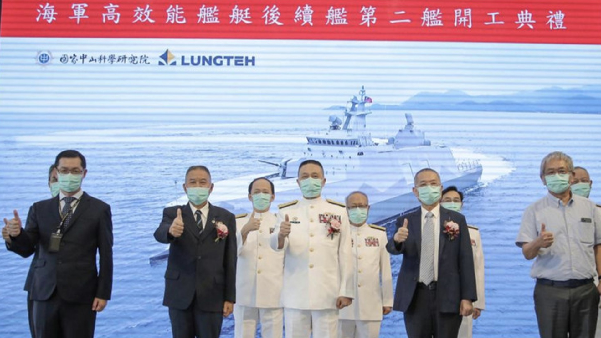 劉志斌強調,因應敵情威脅,在海軍、中科院及龍德公司三方齊心協力合作之下,將首艦工期縮短為27個月,提前至今年7月交艦,向國人展現國艦國造具體成果。最後,盼未來能持續努力,務必達成112年完成籌建6艘高效能艦艇目標,以快速提升國軍整體防衛作戰能力。