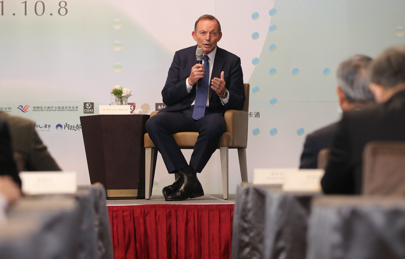 外交部8日在台北舉行玉山論壇場邊記者會,邀請澳洲前總理艾波特(Tony Abbott)出席與會,與媒體座談。(圖/中央社)