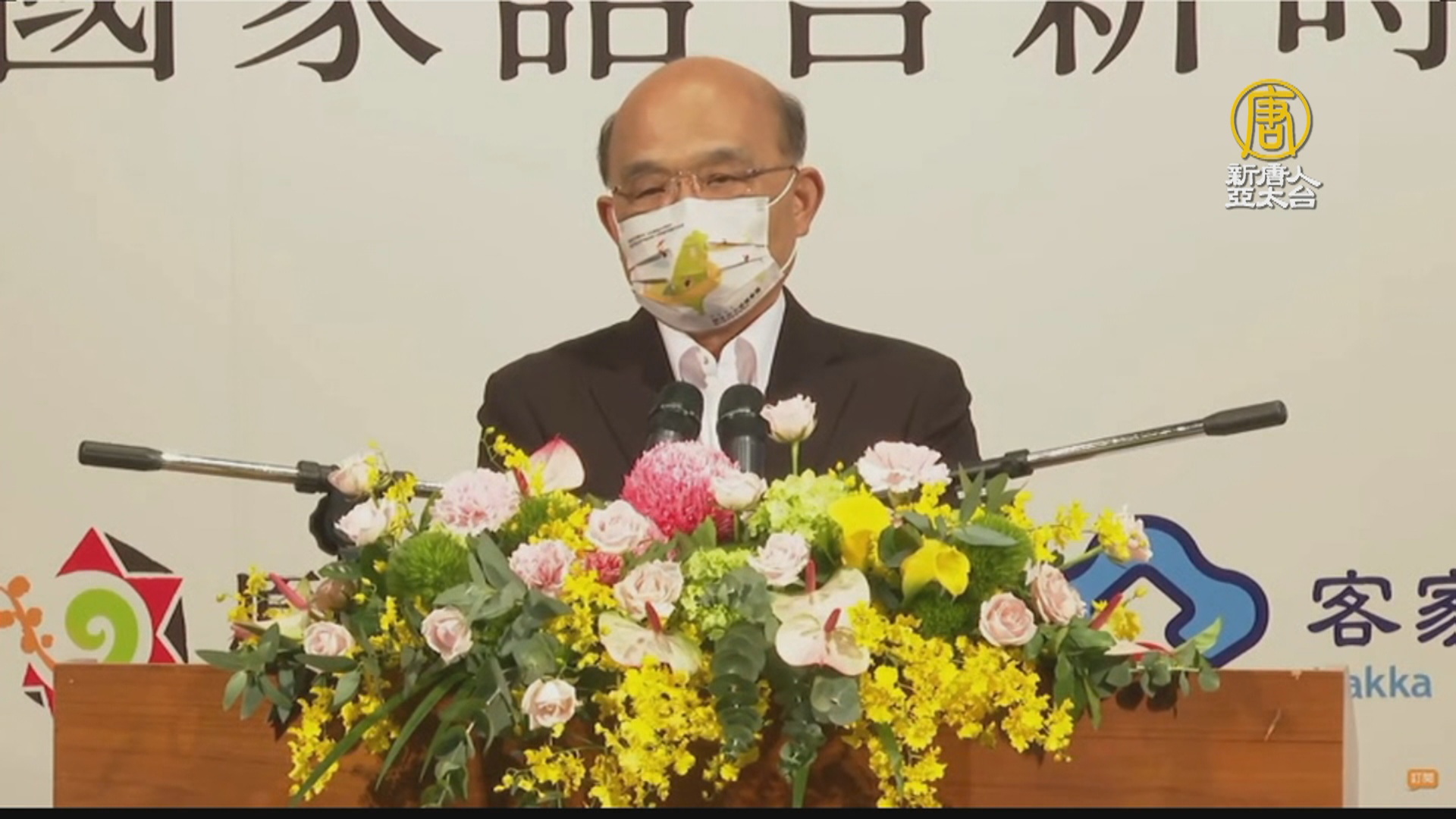 行政院長 蘇貞昌:「用一生看著台灣語言,在威權時代怎麼被政府打壓,我是真正在學校裡面,掛狗牌被老師打頭,要洗廁所的孩子,只因為我講媽媽的話。」