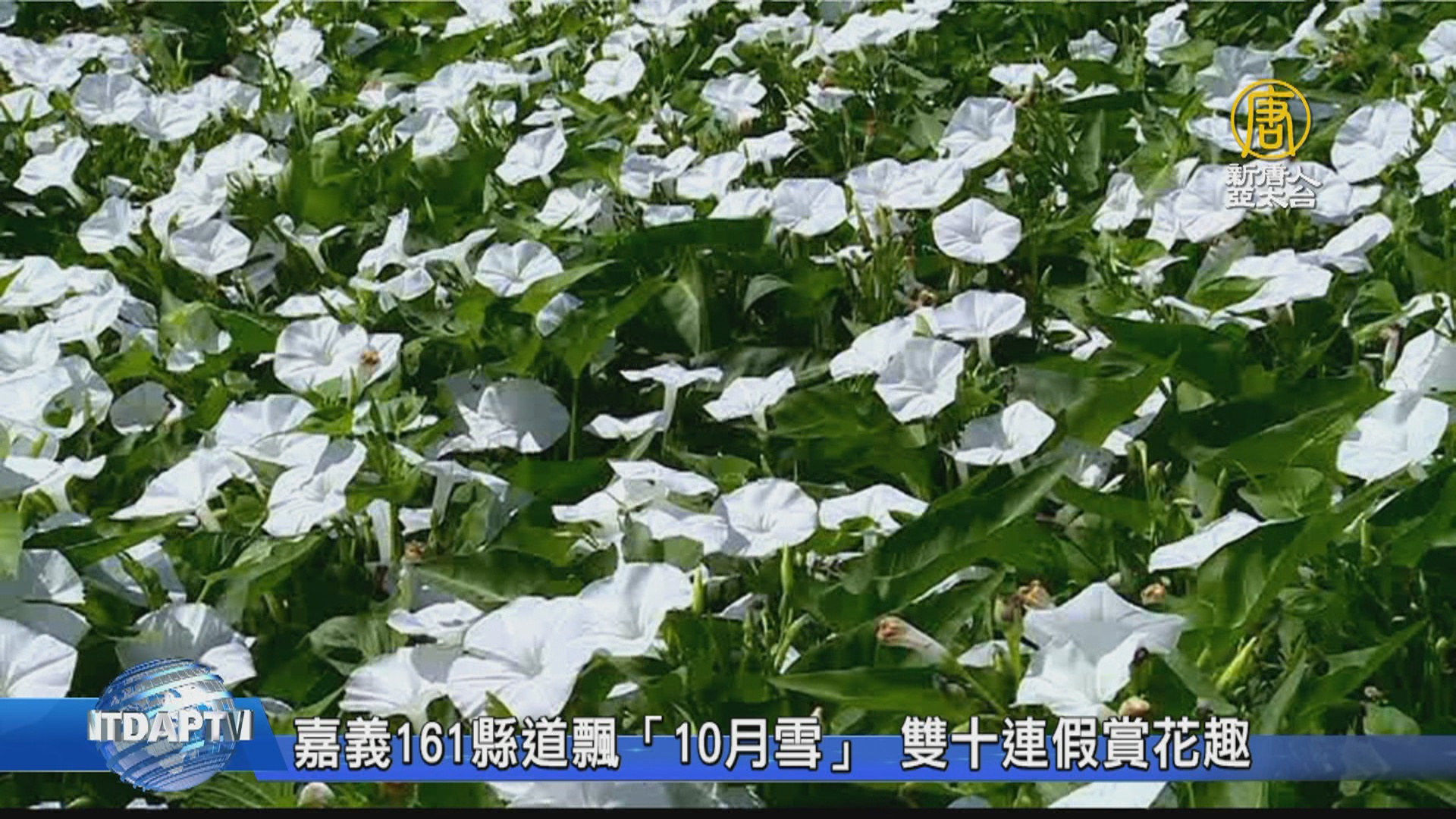 【新唐人亞太台 2021 年 10 月 09 日訊】連假何處去,來看美麗的「10月雪」美景,這是嘉義布袋、朴子的空心菜花種植區,目前正值開花期,適逢雙十連假,吸引許多遊客到訪。