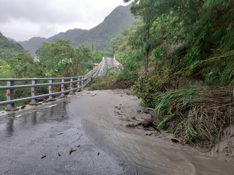 花蓮南區雨量可觀,赤科山道路中斷。 颱風圓規雖未登陸,卻為花蓮帶來可觀雨量,玉里鎮赤科山高寮往竹林山上,一座40年橋齡的竹林橋,不敵一天一夜的風雨,加上年久失修,12日橋墩下陷而封閉。(圖/民眾提供)