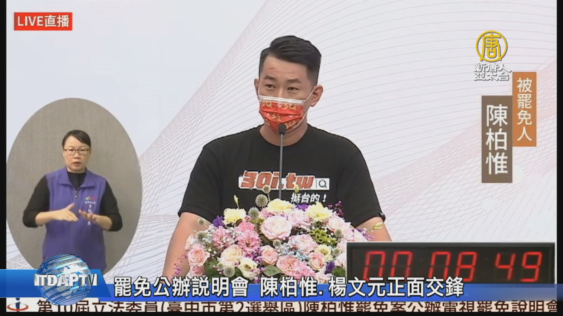 【新唐人亞太台 2021 年 10 月 13 日訊】立委陳柏惟罷免案將在10月23日舉行投票,今晚(13日)舉辦公辦電視說明會,2階段,分別由罷免案領銜人、和被提案罷免人說明12分鐘。陳柏惟在早前受訪時表示,只有向外界說清楚、講明白,才能夠反「惡罷」。