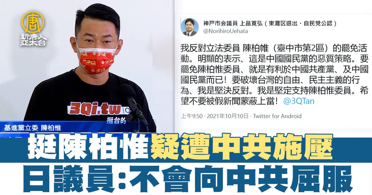 挺陳柏惟疑遭中共施壓 日議員:不會向中共屈服