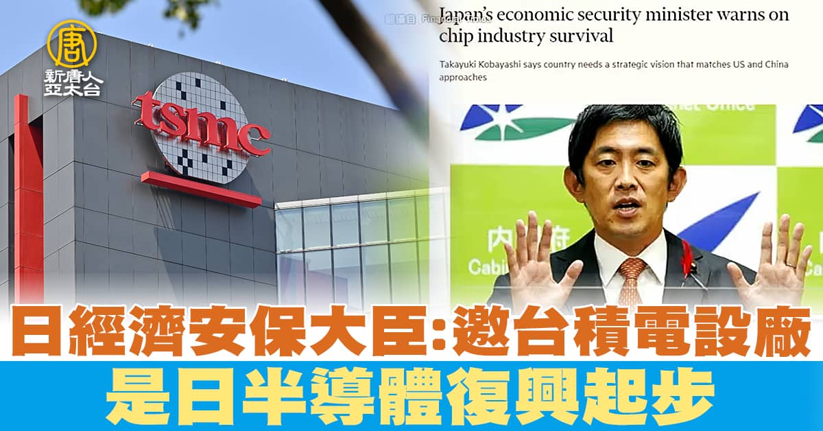 【新唐人亞太台 2021 年 10 月 20 日訊】日本經濟安保省首任大臣小林鷹之,在推特上分享他上任後首次外媒專訪,這次專訪提及邀台積電設廠議題,他對英國金融時報表示,說服台積電在日本興建晶圓廠,只是日本復興半導體產業的起步,日本需要一個能與美國及中國匹敵的半導體長期戰略願景,否則日本的半導體產業註定無足輕重。有消息稱,日本將提供台積電鉅額補貼。小林說:「這只是第一步,如果我們停在這裡,日本半導體將復興無望。」