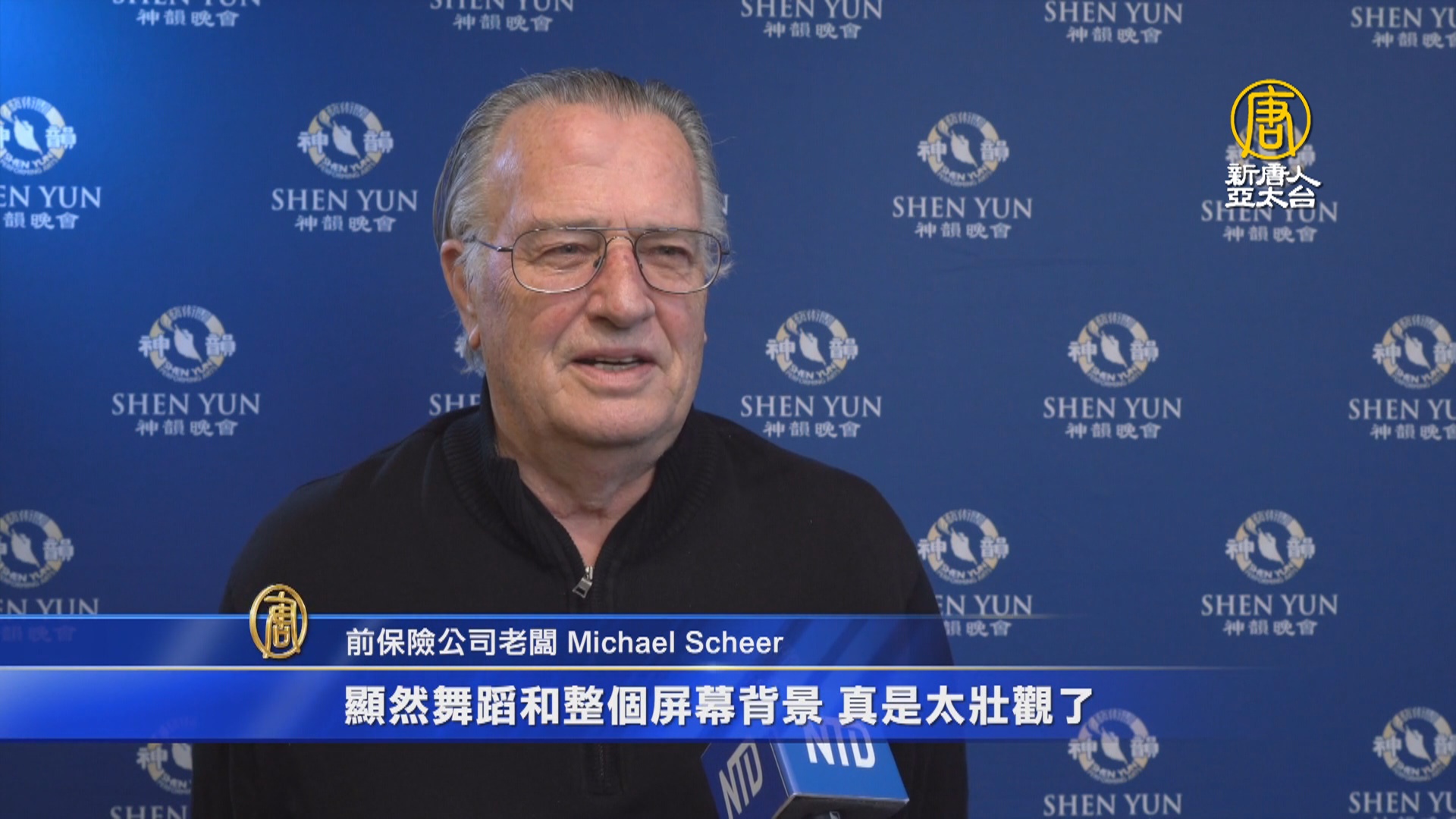 前保險公司老闆 Michael Scheer:「有很多勢力在積極的行動,試圖擺脫神和精神信仰。長期以來都有人站出來並發起反擊。這正是神韻目前做的,或者說是這場演出所展現的。」
