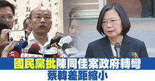 國民黨批陳同佳案政府轉彎 蔡韓差距縮小
