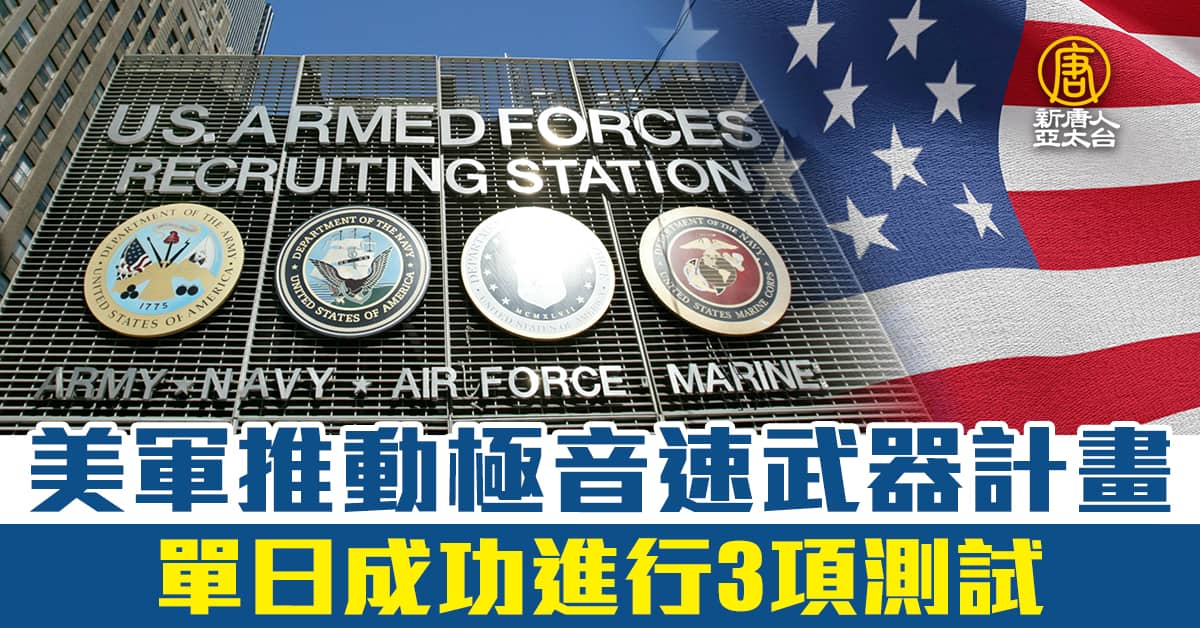 美軍推動極音速武器計畫 單日成功進行3項測試