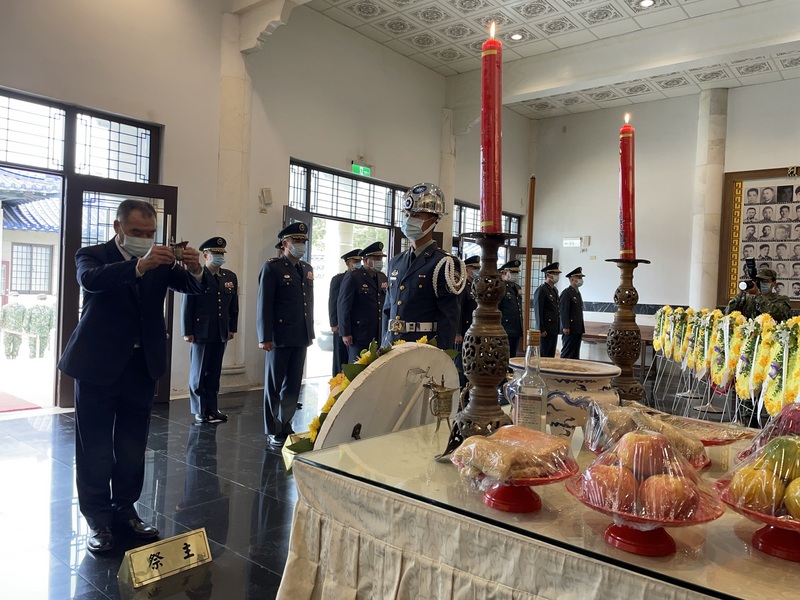 參與今天追思祭祀典禮陪祭的有國防部政戰局局長簡偉中將、陸軍副司令賀政中將、政戰主任楊安中將、金防部指揮官陳忠文中將與楊鎮浯等人陪祭。