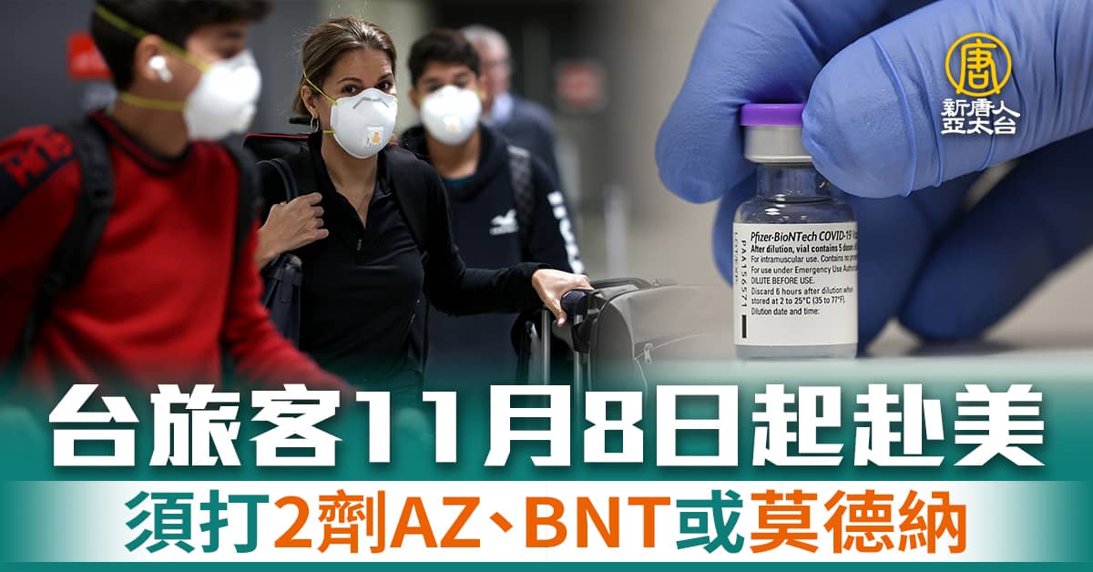 台旅客11月8日起赴美 須打2劑AZ、BNT或莫德納