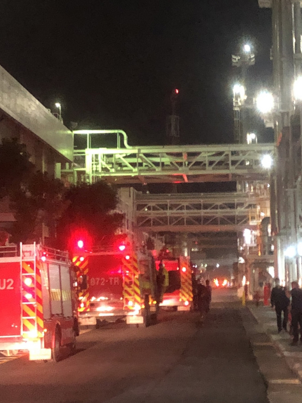 高雄市林園區合興石化公司廠區25日晚間9時多發生火警,消防局出動大批人車前往灌救。(高雄市消防局提供)(圖/中央社)