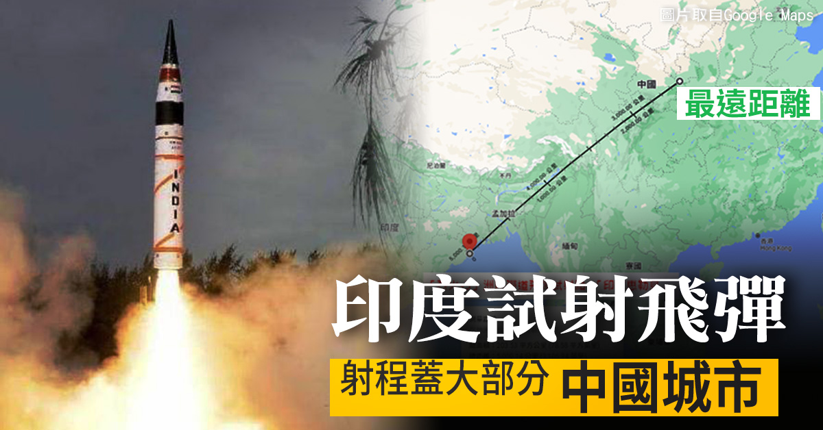 印度試射彈道飛彈 射程涵蓋中國大部分城市