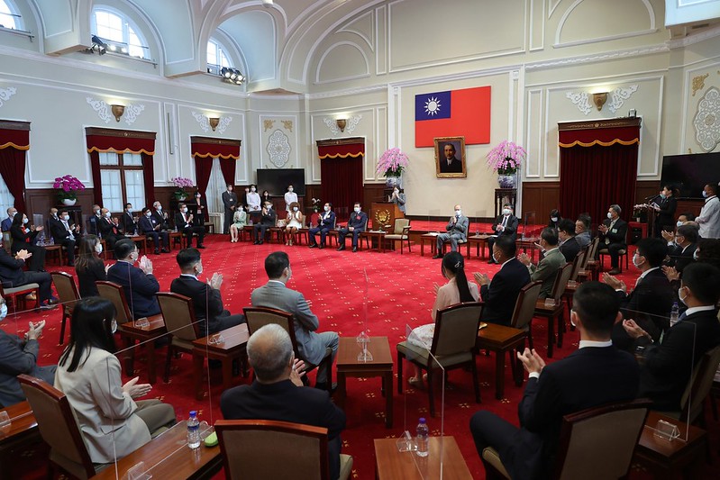 總統蔡英文28日接見優良商人、外國商務單位、創新菁英老店等得獎人,並勉勵他們持續努力在各領域拿出好成績,為台灣社會帶來正面力量。(圖/總統府提供)