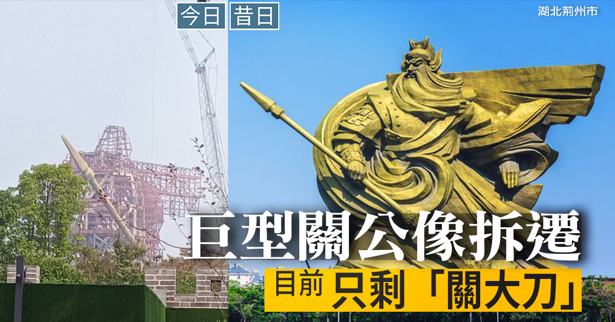 湖北巨型關公像拆遷 目前只剩「關大刀」