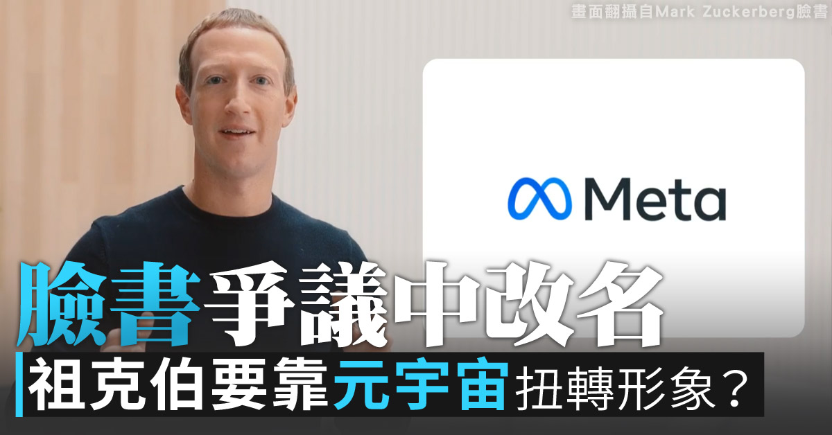 2021-11-02 13:11:33社交媒體巨頭臉書更名為Meta,誓言打造「元宇宙」。專家普遍認為,臉書更名,對抑制醜聞的效用不大。