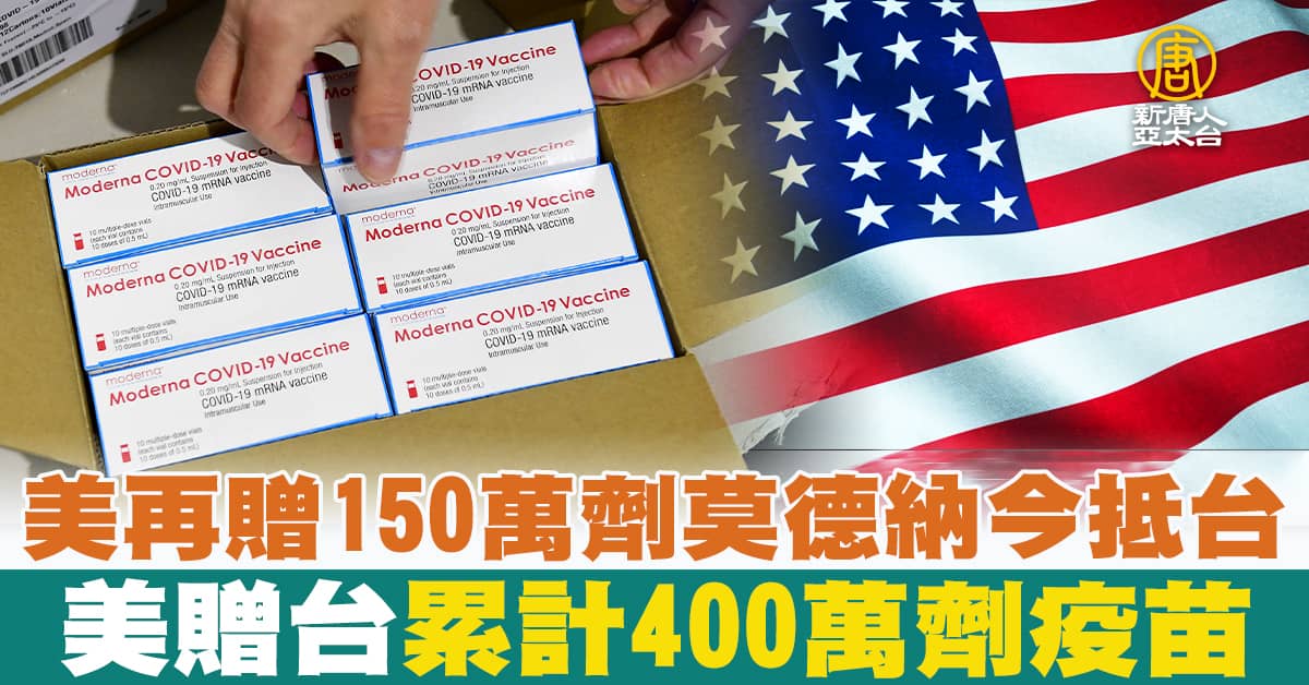 美再贈150萬劑莫德納今抵台 美贈台累計400萬劑疫苗