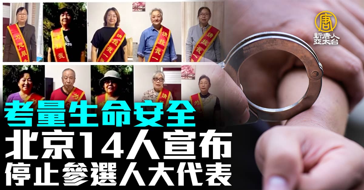 【新唐人亞太台 2021 年 11 月 01 日訊】距離北京市區級人大代表選舉還有4天,包含「709案」家屬在內的14名獨立參選者今天發布聯合聲明,為了人身自由和生命安全,宣布停止參選行動。