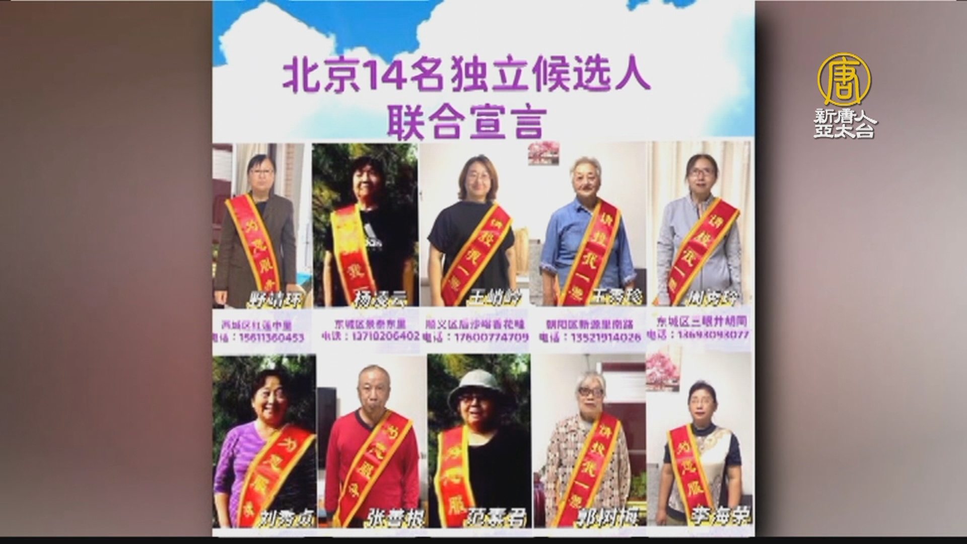 【新唐人亞太台 2021 年 11 月 02 日訊】在中共當局製造的巨大的人身安全威脅下,週一(11月1號),北京14名獨立候選人,宣布停止參選行動,因為他們從宣布參選以來,紛紛受到警察阻撓,限制行動自由,有的被帶到外地,有的遭到鄉政府強拆威脅等,被迫取消選舉宣傳活動。