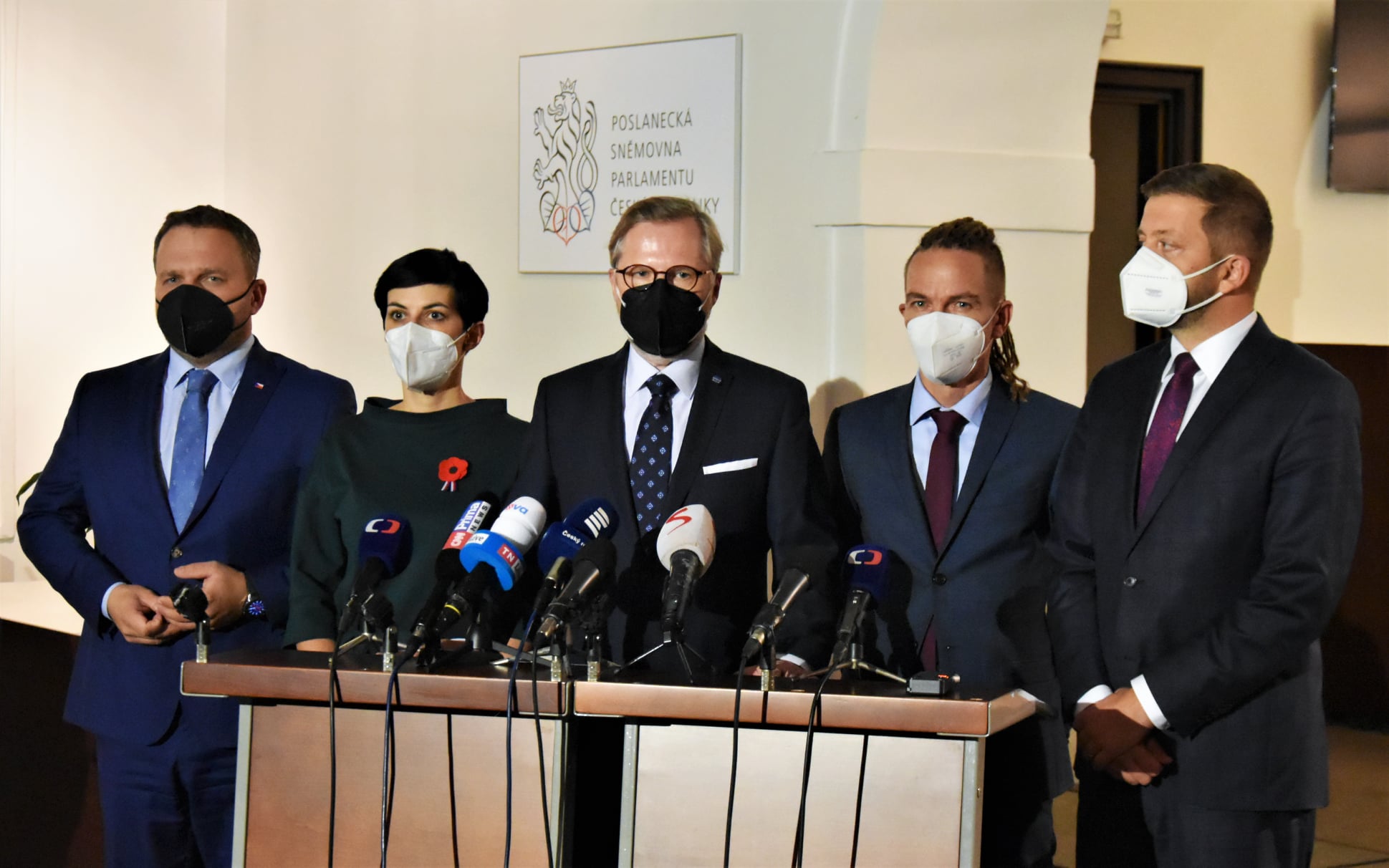 捷克眾議院共200席,「一起」(SPOLU)和「海盜和市長」(Pirati a Starostove)2個聯盟在10月8日至9日的選舉中,合計贏得過半的108席,擊敗現任總理巴比斯(Andrej Babis)和其主要盟友,2聯盟的5位黨主席進而宣布組成聯合政府。