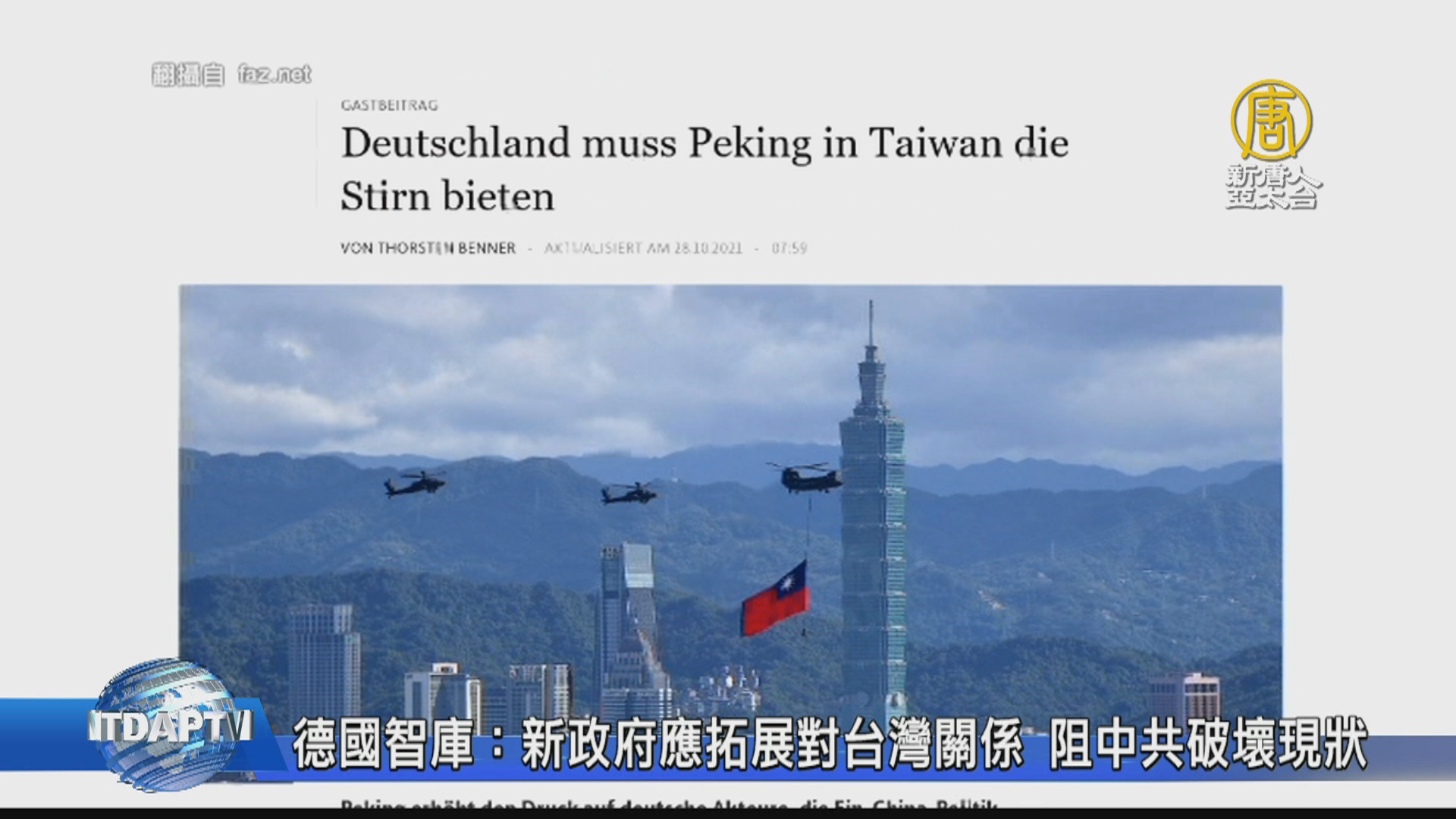 【新唐人亞太台 2021 年 11 月 03 日訊】歐洲挺台聲浪高漲,來看到,德國可望在12月成立新政府,柏林智庫學者指出,鑑於準執政黨和歐盟都支持台灣,建議新政府提升對台關係,阻止中共破壞台海現狀。「全球公共政策研究所」執行長班納撰文指出,新政府應該力挺台灣參與國際組織,德國政府和國會應加強與台灣的政治接觸;德國經濟部長上一次訪台已經是1997年,派部長直接訪台,比寫信要求台灣提高晶片供應量更有成功機會。他說,自民黨旗下的智庫今年在台北設置辦公室是好的開始,其他德國政黨也應該要跟進。他說,德國應該與美國等有意維持台海現狀的國家強化溝通,讓中共明白,破壞現狀可能付出的嚴重代價。