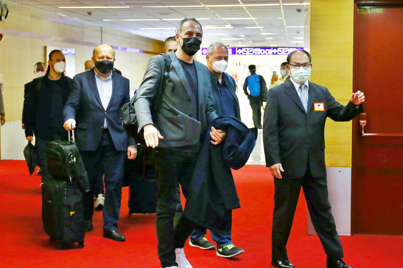 歐洲議會「外國干預歐盟民主程序特別委員會」(INGE)代表團3日抵台交流,由外交部政務次長曾厚仁(前右)代表前往接機,圖前右2為委員會主席格魯克斯曼(Raphael Glucksmann)。(圖/中央社)