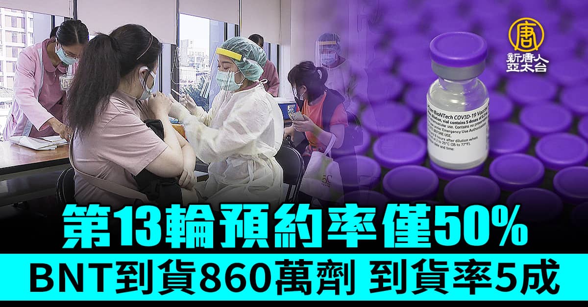 【新唐人亞太台 2021 年 11 月 05 日訊】歡迎回來。台灣公費疫苗接種第13輪周五(11月5日)開打,全台有126萬人預約,包括BNT和AZ一、二劑都打的到,但預約率卻只有50%,台北市府中型接種站的預約率更跌到35%。醫師分析,可能因為部分民眾想等待混合接種。另外,當天凌晨,最新一批BNT疫苗再抵達台灣,1500萬劑訂單,累計到貨率突破5成。