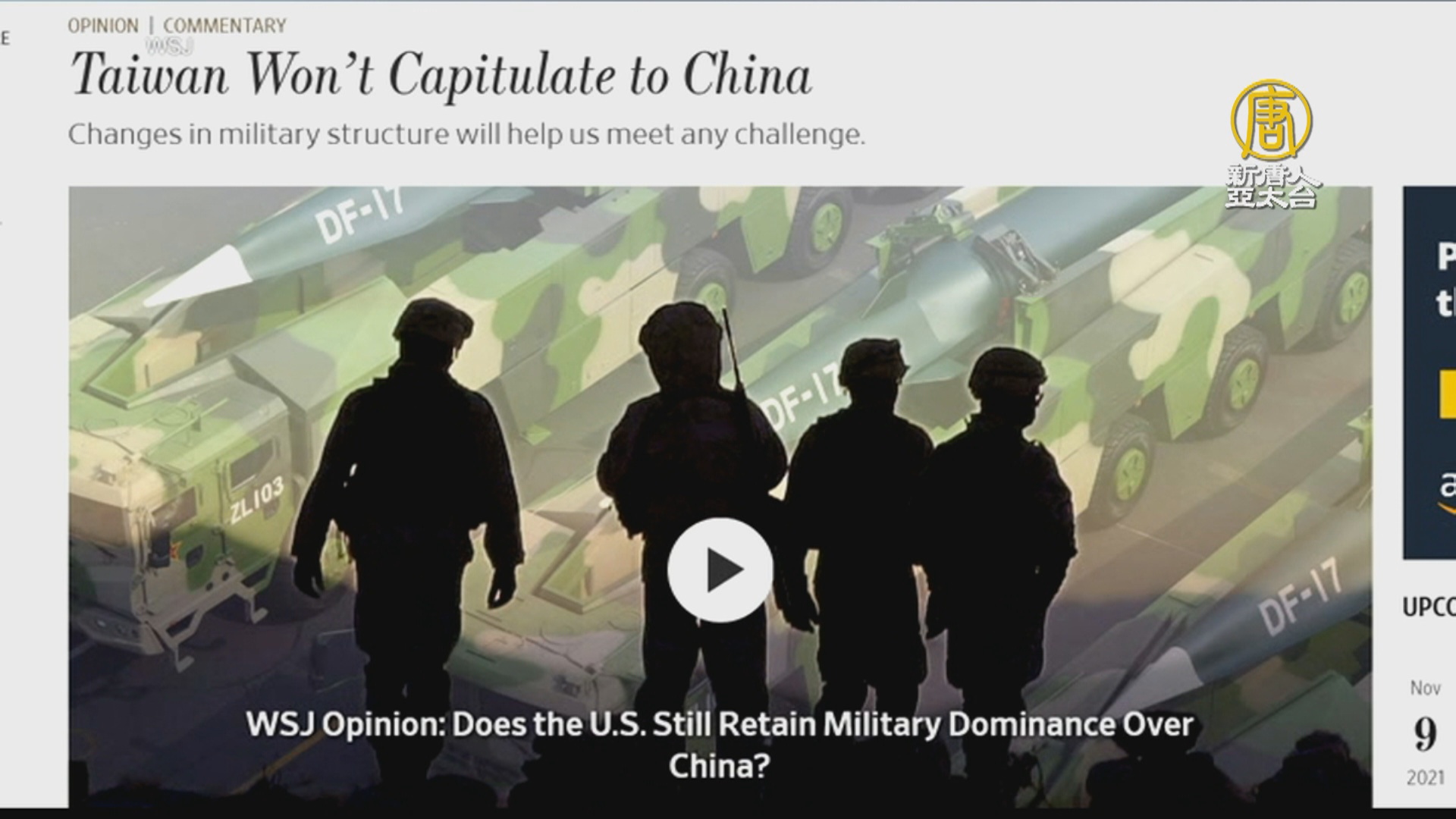 【新唐人亞太台 2021 年 11 月 06 日訊】5號,路透社發布特稿,設想中共攻台的6種可能情境,最糟糕的,甚至可能引發東亞大戰。同一日,美國「華爾街日報」刊登中華民國國防部長邱國正投書,他說,台灣的資源、人力與軍事科技雖無法與中共抗衡,但不會向中共投降。