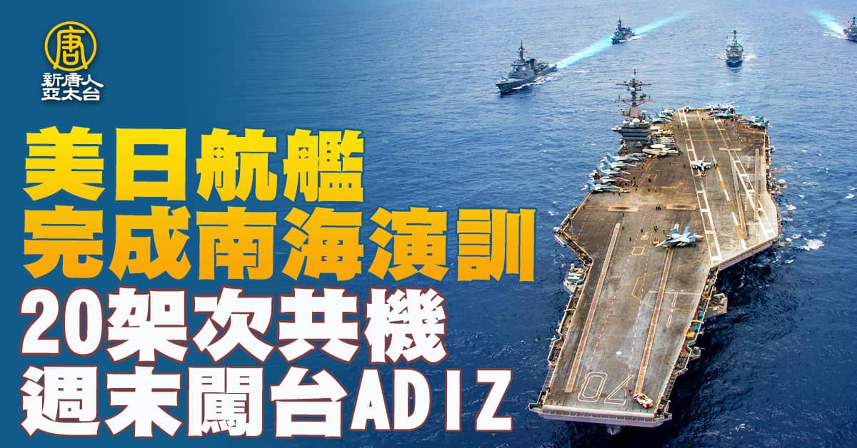 美日航艦完成南海演訓 中共派20架次戰機週末闖台ADIZ